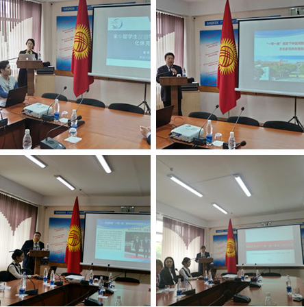 公司蔺海鲲、董家丽、杜军林、哈建军四位教授分别以《“一带一路”视野下中国河西走廊与吉尔吉斯斯坦文化多元共生理念比较研究》《来华职工汉语学习过程中的“文化休克”现象》《“一带一路”教育共同体构建视阈下中吉两国人才交流模式的新探索》《民间艺术对“一带一路”优秀文化的传播》为主题作了学术报告,取得了良好的评价和效果。