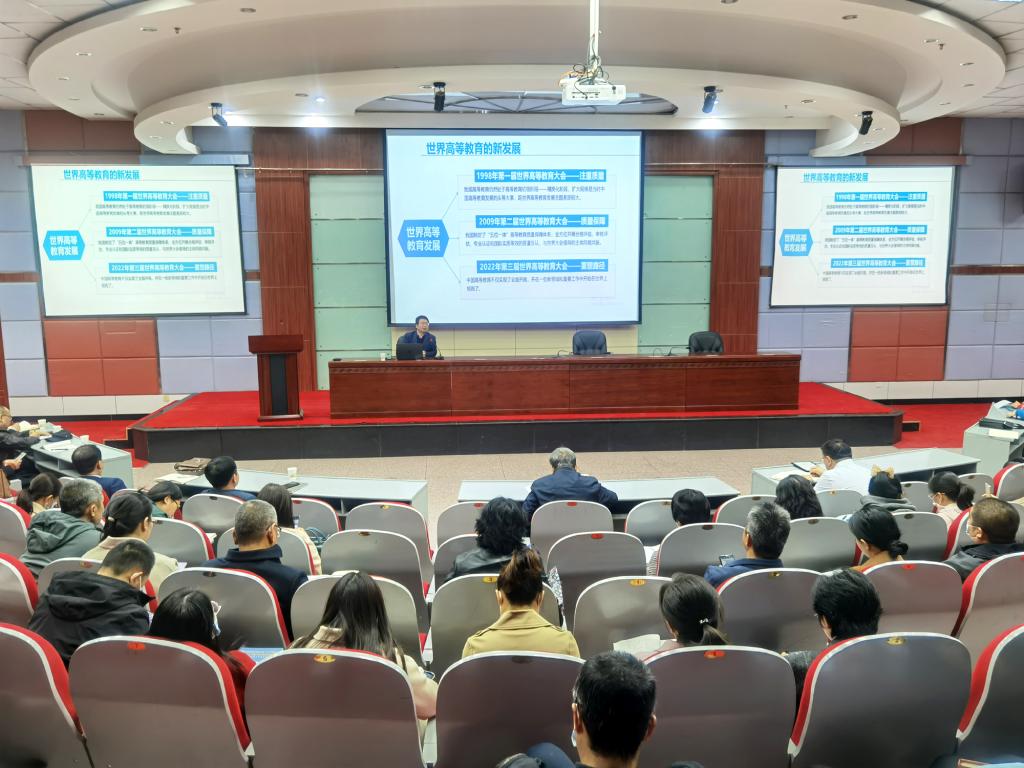 王国银处长在图书馆报告厅作了题为“四新建设与高校人才培养的新变化”的专题报告。公司相关部门和各公司、专业负责人、教研室主任、教师代表等200余人参加了报告会。教师教学发展中心在线上进行了报告同步直播。