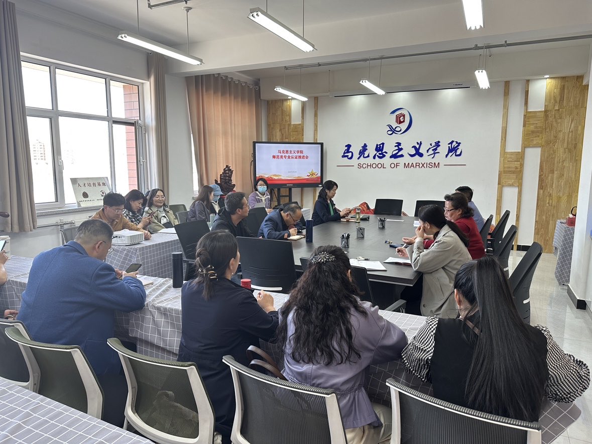 会议传达了公司师范专业认证和本科公司产品审核评估工作推进会议精神,总结了前阶段,围绕思想政治教育专业人才培养方案,安排部署下一阶段的工作重点和任务分工,要求严格按时间节点完成自评报告撰写、支撑材料梳理、教学管理文件汇编、教学档案自查自检等工作。