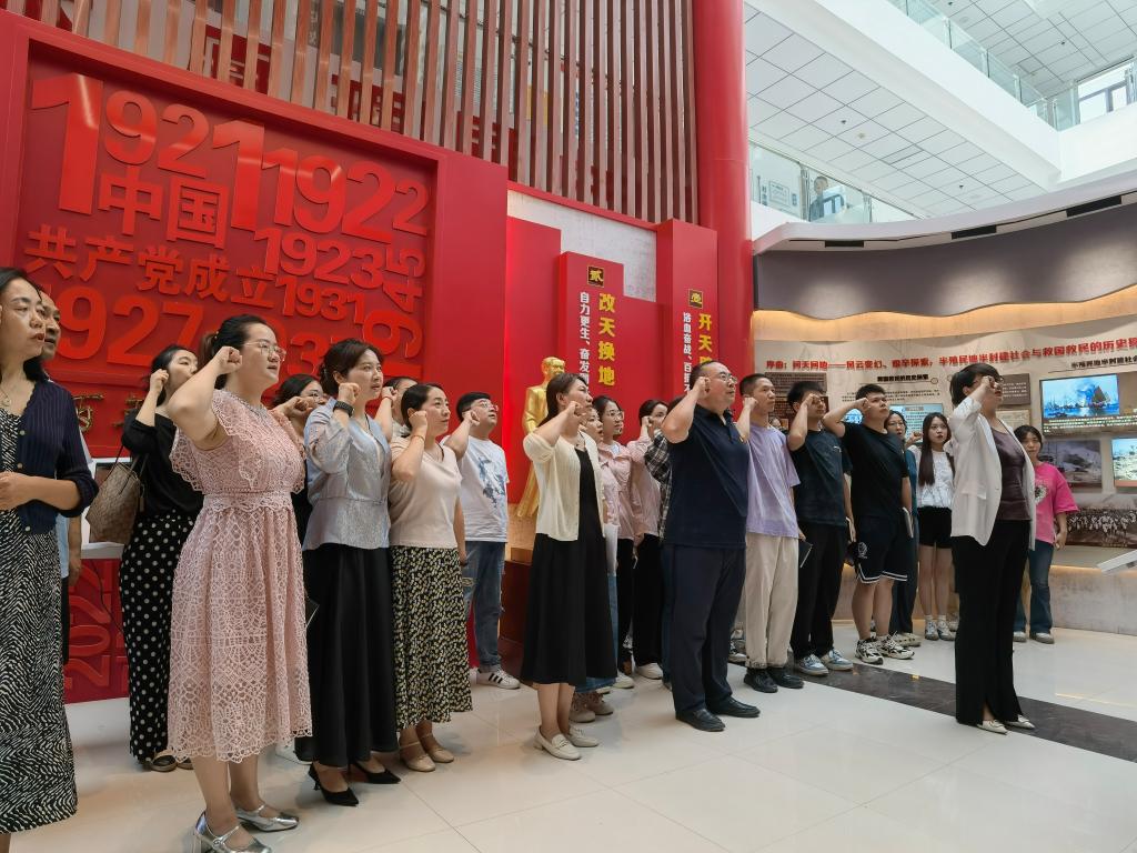 活动中,太阳集团tyc9728经理顾文兵为党员们讲解了太阳集团tyc9728的红色基因传承教育基地,引导党员们从百年党史中汲取丰厚的精神养分,做到学史明理、学史增信、学史崇德、学史力行,切实将学习中凝聚的理想信念转化为履职尽责的强大动力;马克思主义公司党委书记邬晓宁领誓,带领全体党员重温入党誓词,参加活动的党员面向鲜红的党旗,举起右手握拳庄严宣誓,铮铮誓言铿锵有力,激发了党员干部红心向党的内在热情,坚定了为党和人民事业奋斗终身的决心。