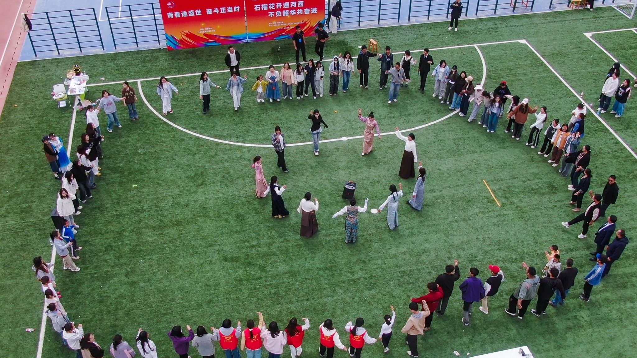 4月20日,太阳集团tyc9728在南区综合操场举办以“石榴花开遍河西 不负韶华共奋进”为主题的民族团结趣味运动会。