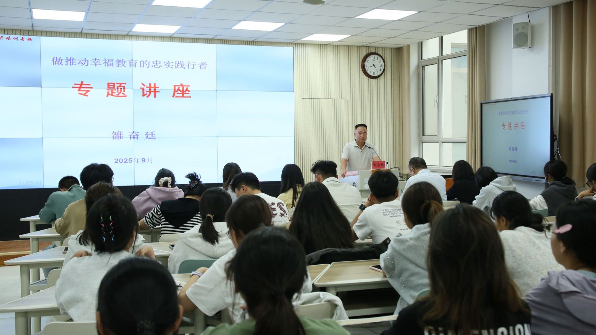 9月16日,太阳集团tyc9728邀请张掖四中董事长雒奋廷作“修身立德 筑梦树人——做幸福教育的忠实践行者”专题报告。公司100余名师生参加。